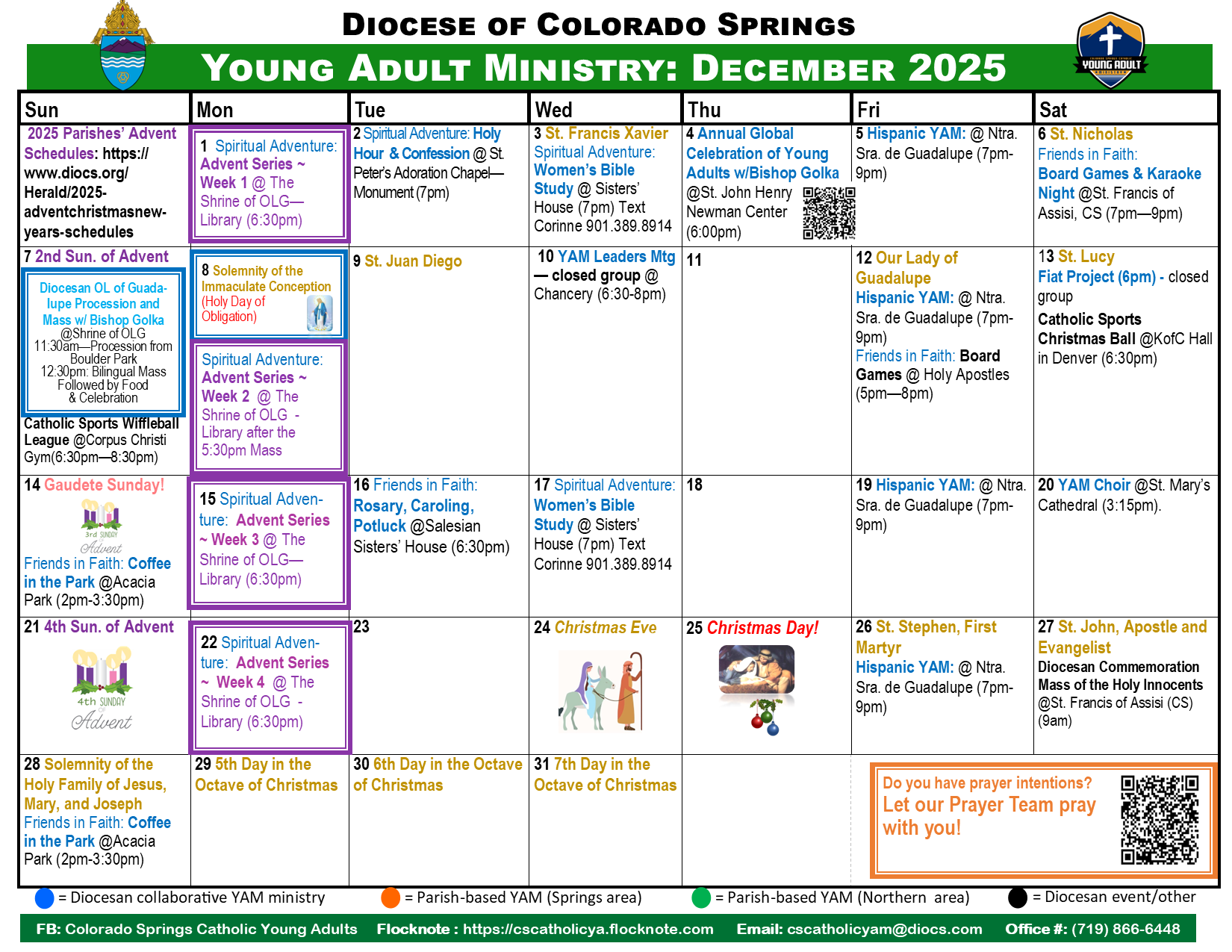 We’re excited you’ve reached our page in search of a community of Christ-centered friends here in Colorado Springs. We encourage you to start by getting connected! It’s easy.. just visit our "Get Connected Section" to request to be added to our email list and to connect with us on Facebook & Flocknote! Once connected, you'll be able to engage in meaningful conversations, rsvp for upcoming events, share prayer requests and see the many Young Adult activities taking place across the Diocese! Once again, on behalf of all our Young Adult Ministry Family, WELCOME! Check out this months events below! Hope to meet you soon! ~ Sr. Quynh, FMA