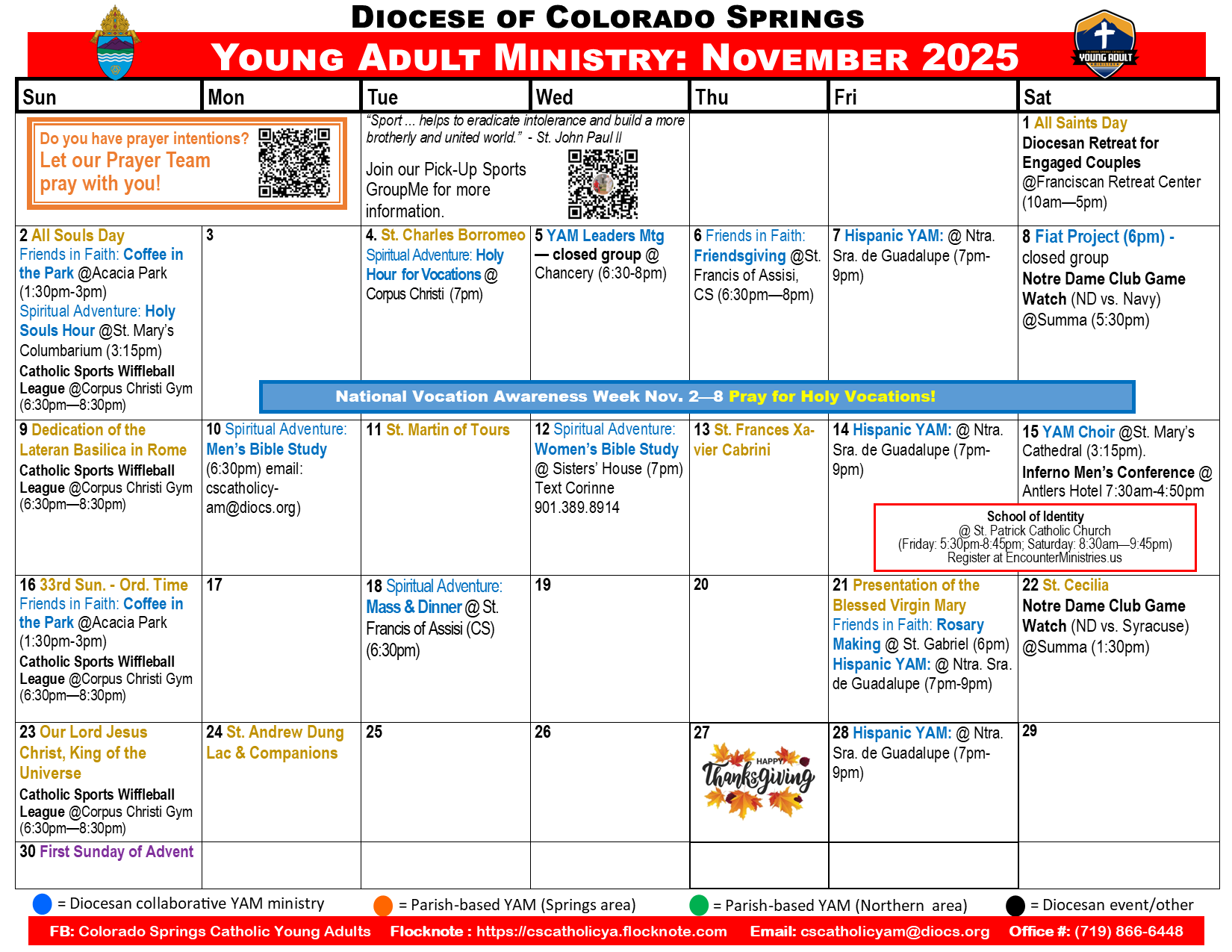 We’re excited you’ve reached our page in search of a community of Christ-centered friends here in Colorado Springs. We encourage you to start by getting connected! It’s easy.. just visit our "Get Connected Section" to request to be added to our email list and to connect with us on Facebook & Flocknote! Once connected, you'll be able to engage in meaningful conversations, rsvp for upcoming events, share prayer requests and see the many Young Adult activities taking place across the Diocese! Once again, on behalf of all our Young Adult Ministry Family, WELCOME! Check out this months events below! Hope to meet you soon! ~ Sr. Quynh, FMA