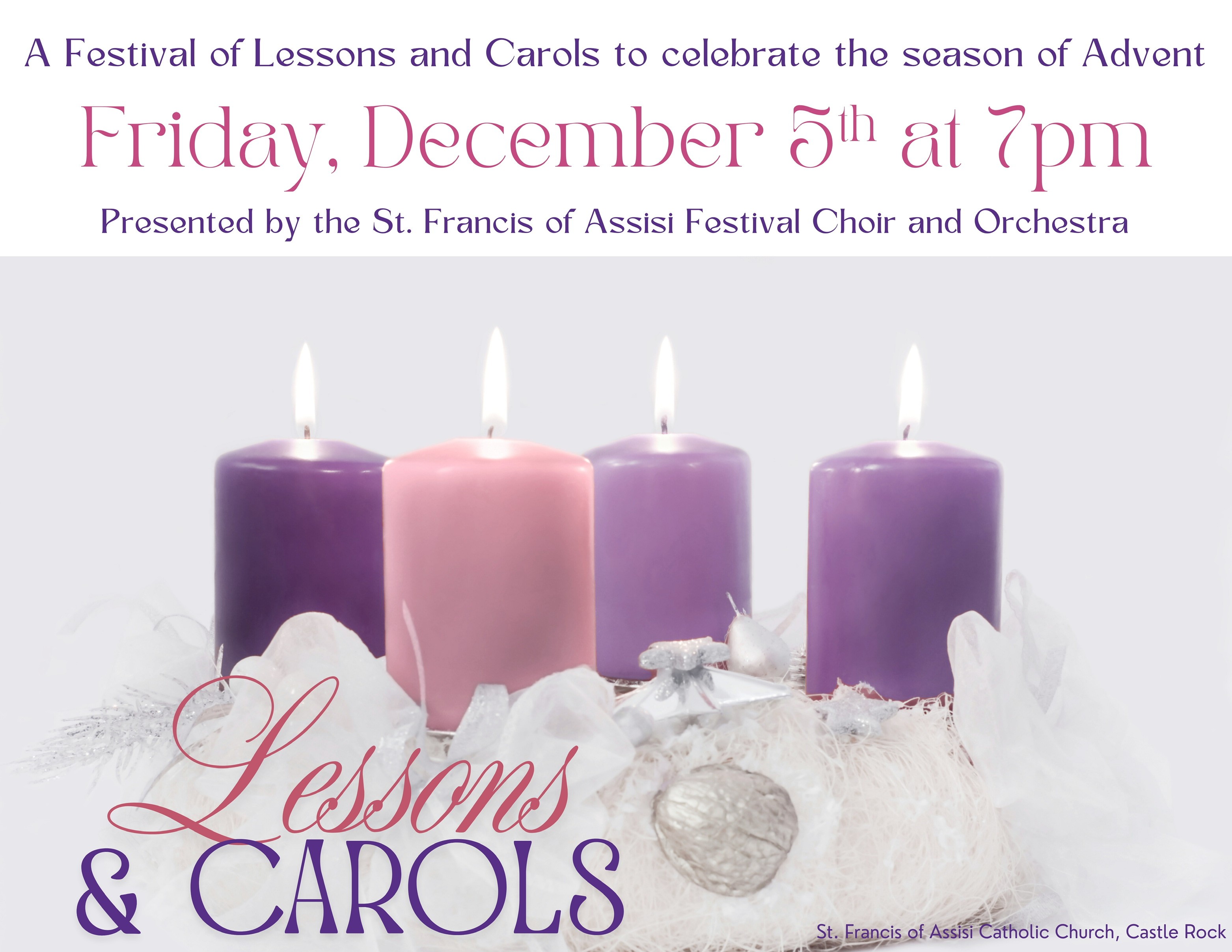 Event date: 12/5/2025 7:00 PM - 9:00 PM Export event Andrea Bekurs / Thursday, November 13, 2025 / Categories: Upcoming Events Lessons and Carols to Celebrate Advent Season Previous Article First Friday Fast and Pray Next Article Free 2025 Advent and Christmas Lessons and Carols and Concerts Print 28 Rate this article: No rating Please login or register to post comments.