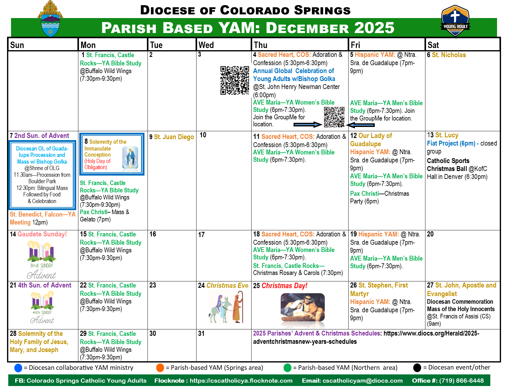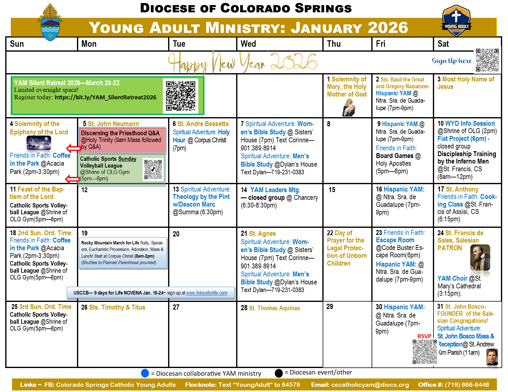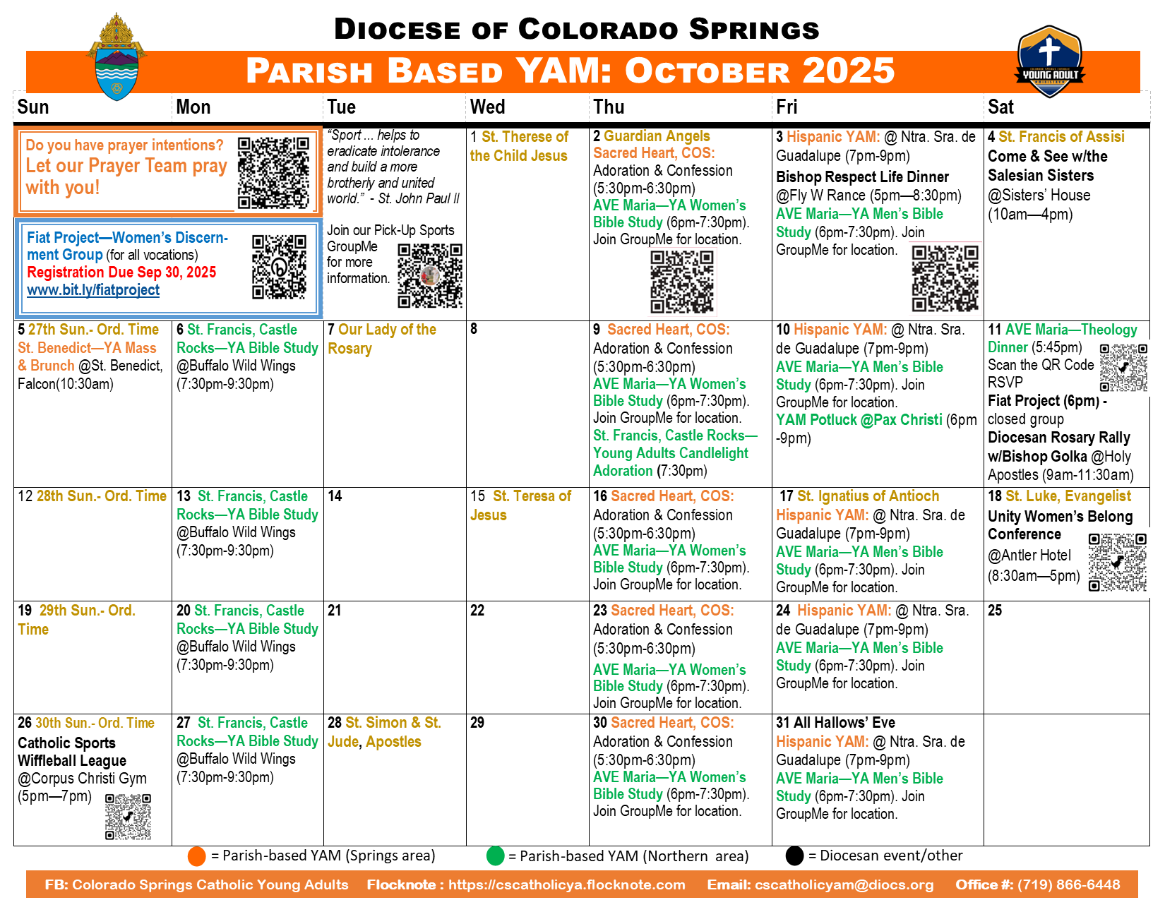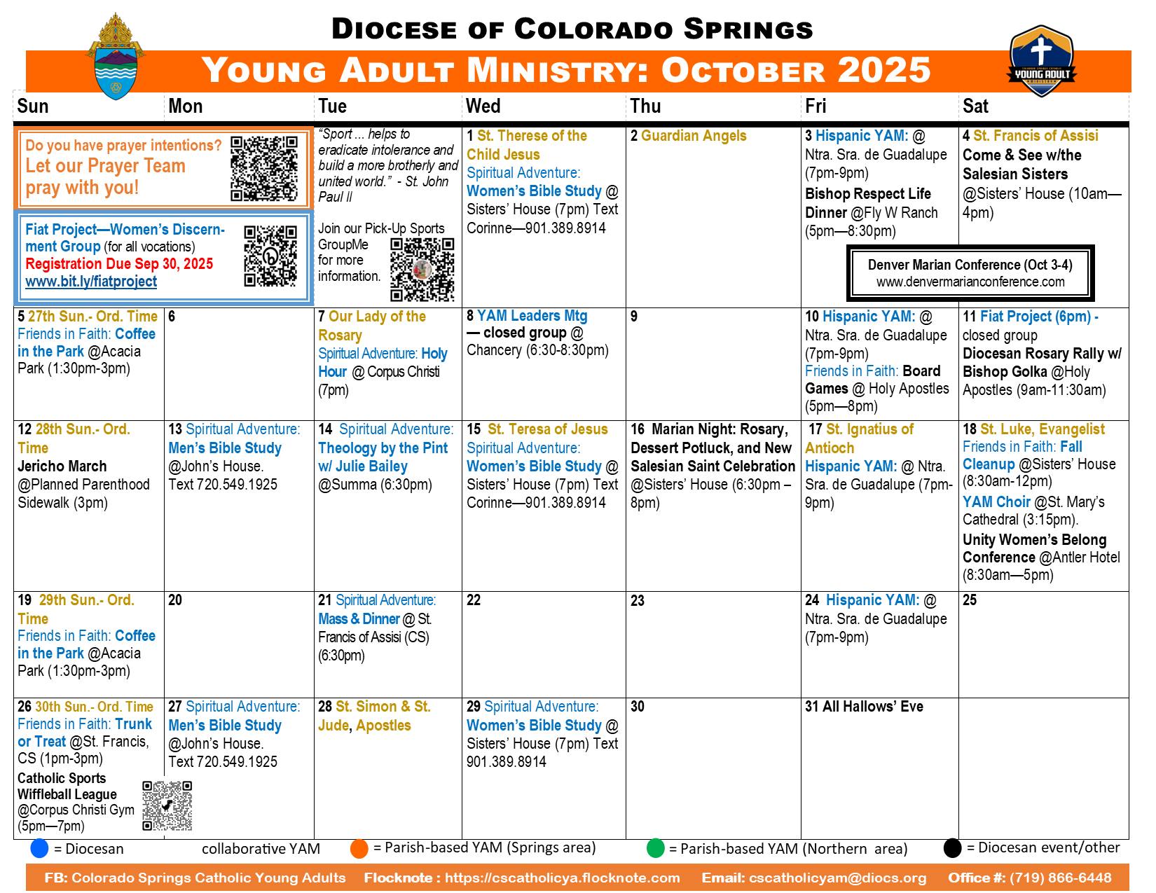 We’re excited you’ve reached our page in search of a community of Christ-centered friends here in Colorado Springs. We encourage you to start by getting connected! It’s easy.. just visit our "Get Connected Section" to request to be added to our email list and to connect with us on Facebook & Flocknote! Once connected, you'll be able to engage in meaningful conversations, rsvp for upcoming events, share prayer requests and see the many Young Adult activities taking place across the Diocese! Once again, on behalf of all our Young Adult Ministry Family, WELCOME! Check out this months events below! Hope to meet you soon! ~ Sr. Quynh, FMA