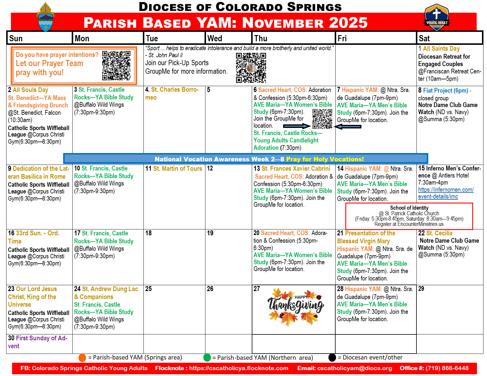 We’re excited you’ve reached our page in search of a community of Christ-centered friends here in Colorado Springs. We encourage you to start by getting connected! It’s easy.. just visit our "Get Connected Section" to request to be added to our email list and to connect with us on Facebook & Flocknote! Once connected, you'll be able to engage in meaningful conversations, rsvp for upcoming events, share prayer requests and see the many Young Adult activities taking place across the Diocese! Once again, on behalf of all our Young Adult Ministry Family, WELCOME! Check out this months events below! Hope to meet you soon! ~ Sr. Quynh, FMA